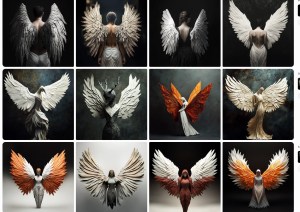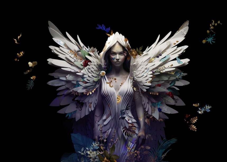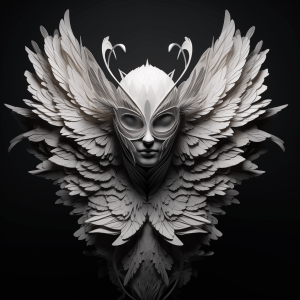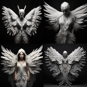 The main basis of the composition is inspired by origami techniques, made possible by AI research (see below). I then structured it by composing various digital elements, chosen, drawn and cut out by myself, from images generated by the AI by asking it prompts inspired by the text of the play.