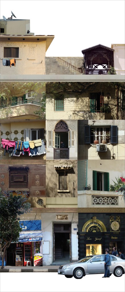 L’architecture, le style, la vie du quotidien restent pour moi une source d’étonnement et de curiosité.Les images sont composées en photomontage à partir de mes photographies