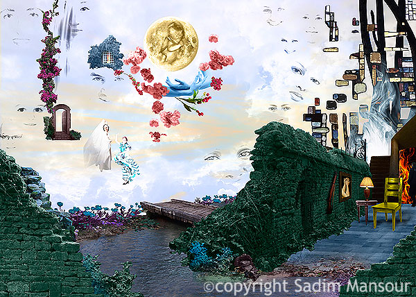Des lieu imaginaires exprimants des sentiments. Ce sont mes débuts dans la composition artistiques, bien avant l’IA et les logiciels qui facilitent l’imaginaire.